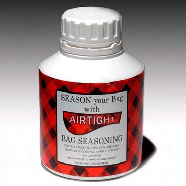 The seasoning is poured inside the bag to keep it airtight and has moisture absorbing qualities. Also now in a microwaveable bottle that is quicker and cleaner than the famous and much loved metal tin and also keeps the seasoning better over time. 2 to 3 tins required to season a new bag over a period of the first 4 months. Don't pour the whole bottle of seasoning in at one time -a little on a regular basis is best. Use tissue or cloth to get any drips as you pour the seasoning into the chanter stock -double check all 4 corks are in the stocks just before pouring as its not nice having a warm, gooey feeling trickling down your leg -trust me it's not -please do not use wine corks.